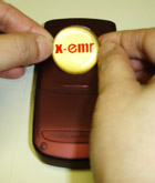 把 X-emr 貼於電話背面;使用電話時,手或手指保持接觸 X-emr以達最佳效能;電話放於口袋時,應保持 X-emr 置於身體及電話之間。